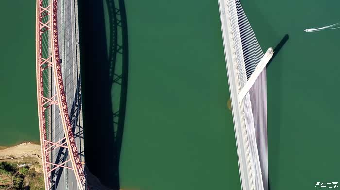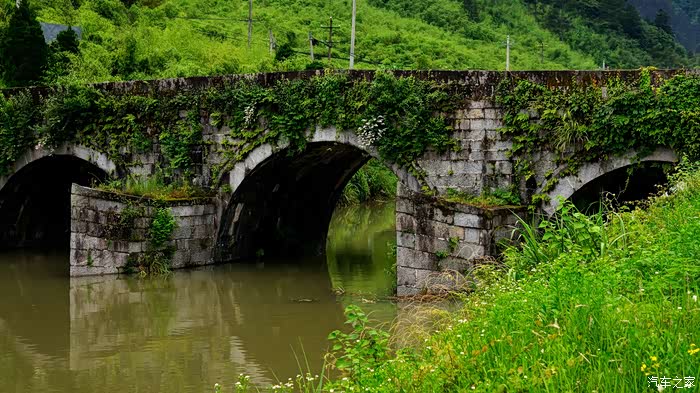 双桥不同的视角形成了不同的组合,茶山的优美曲线下沉至平静的湖水中。
