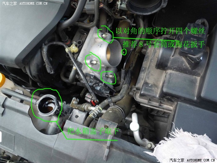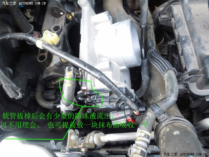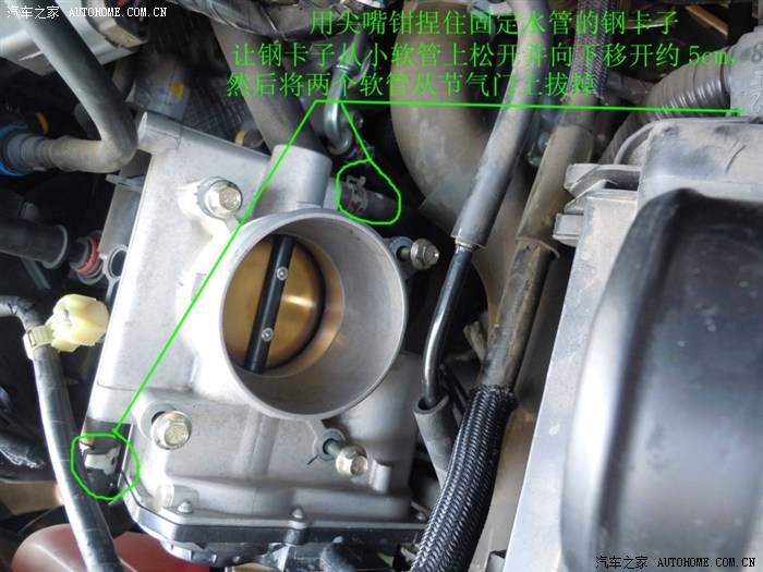 最好冷车时候操作, 或者停驶两个小时后做, 避免连接节气门的水管压力过高