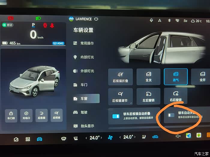 操作步骤:车机设置把锁车自动关窗关掉,锁车前点开车窗透气模式,锁车后车窗就会留点缝隙,方便透气