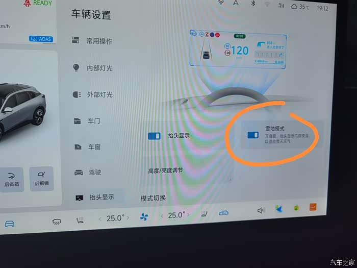 6.HUD设置成雪地模式,白天使用HUD更清晰,避免前面是白色车看不清