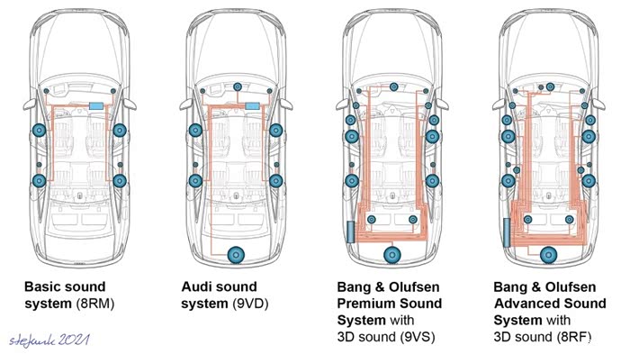 下面就针对上面的知识,一一介绍一下奥迪喇叭的布局及特点:
