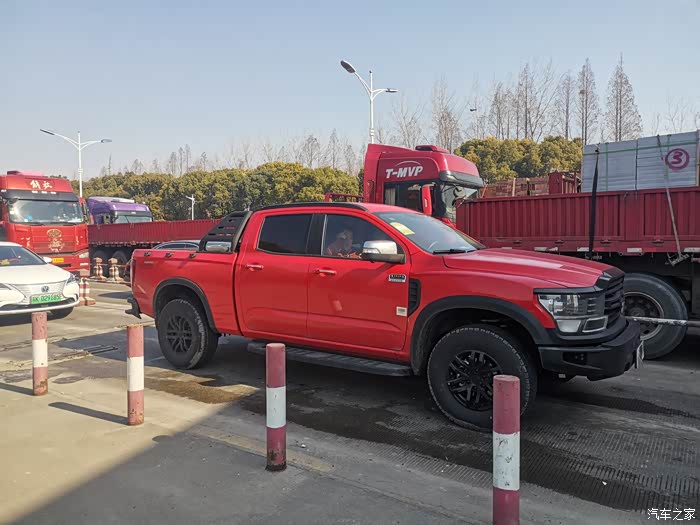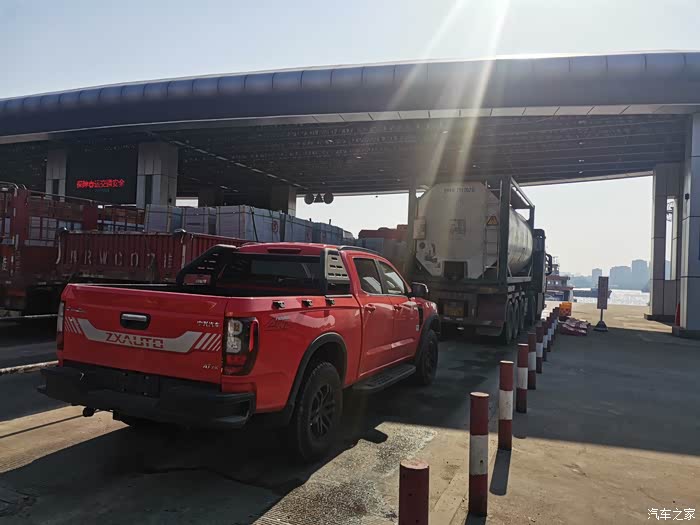 到了服务区放个水,继续行进,得益于电子助力,方向没有虚位,高度指向性非常好,底盘很紧凑,行驶品质很高,给人安全感十足,但是遇到凹凸路面,颠簸感还是比轿车明显的多,皮卡空车状态就这样