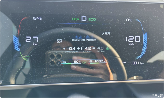 全程强制保电50%,空调自动25度,没有定速巡航(后面再讲),130码左右徘徊。