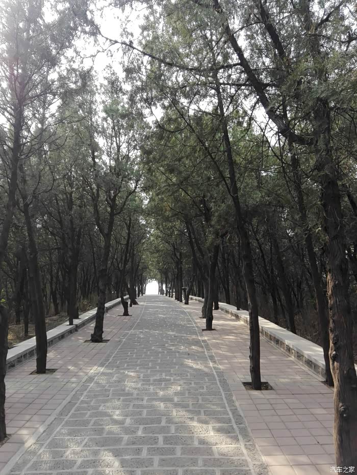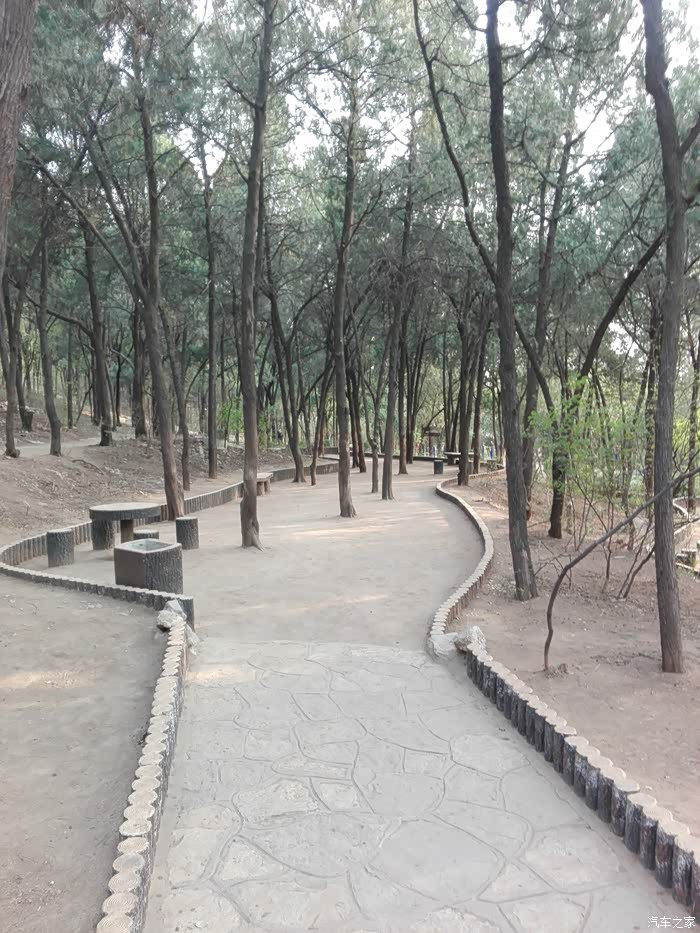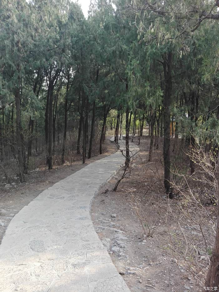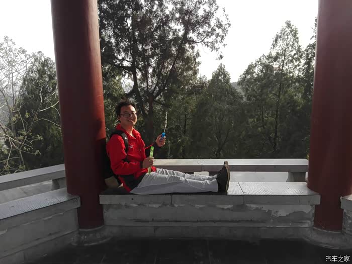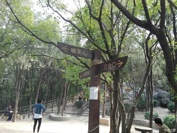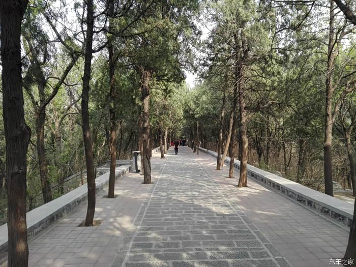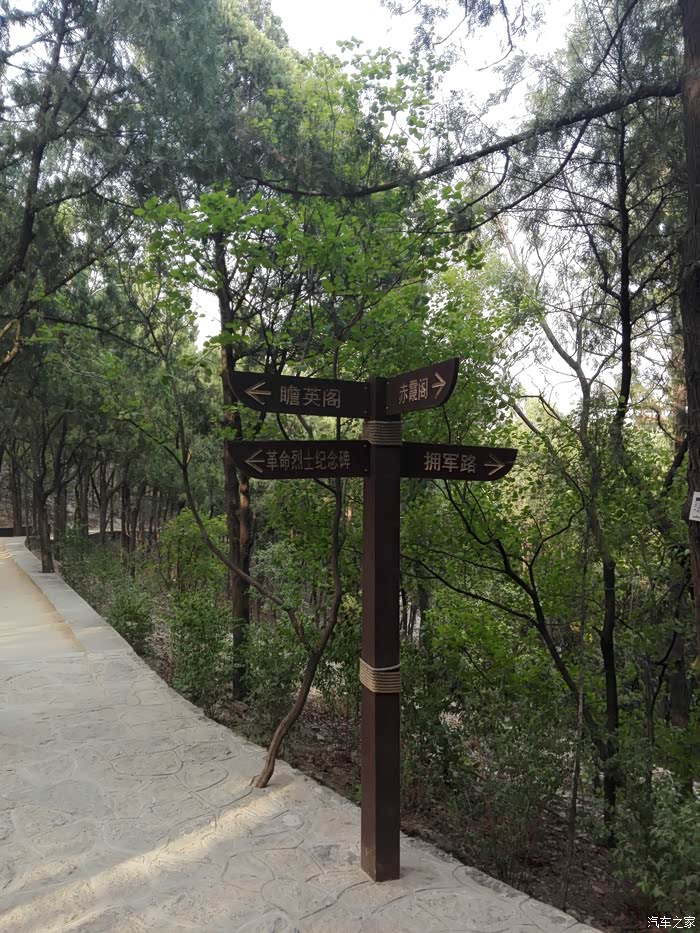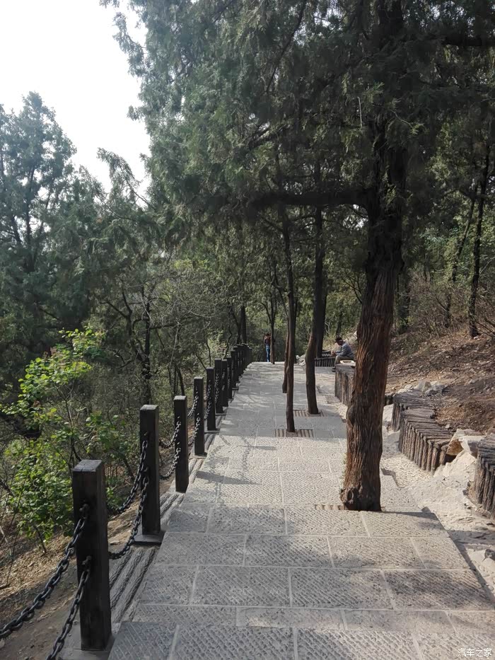 看完了老大爷们放风筝,我们继续东行,准备去看下赤霞阁和瞻英阁。山顶东面是可以骑车的登山道,新修的,特点是道中有树。