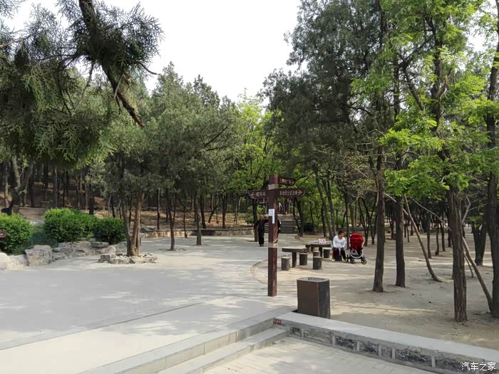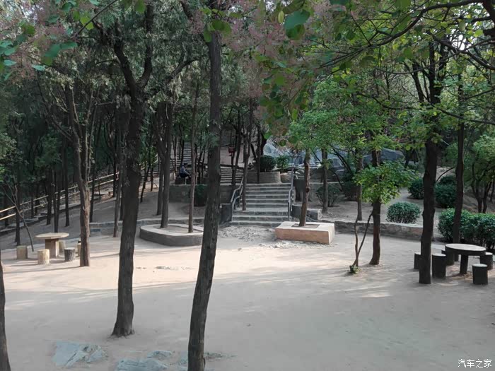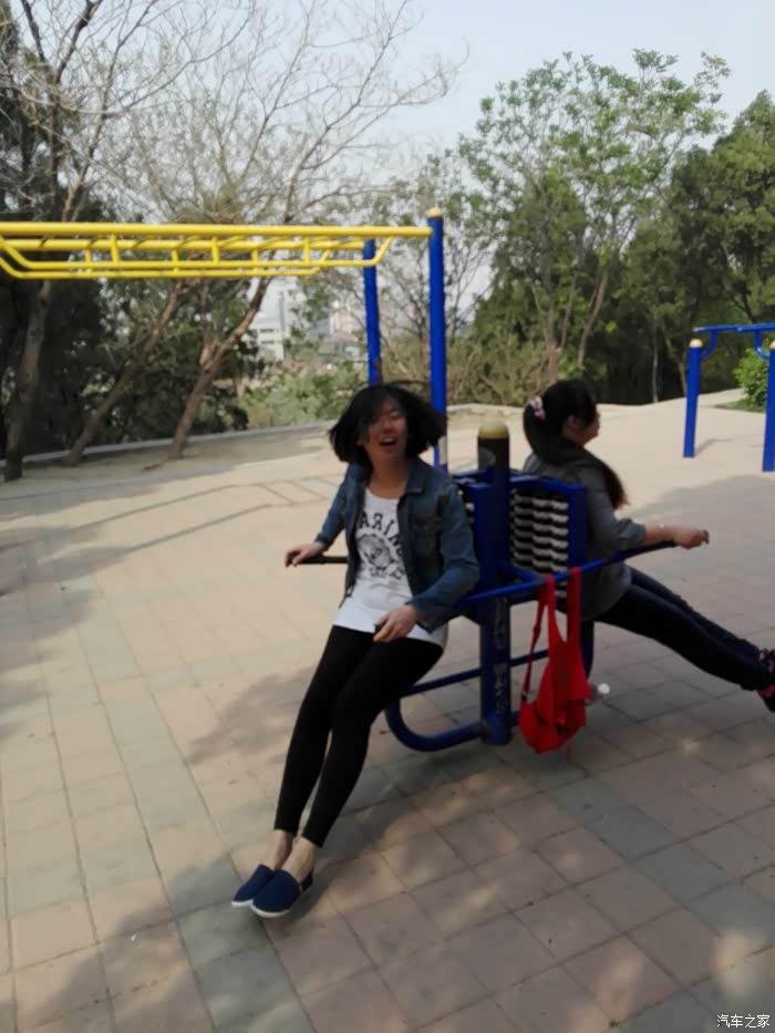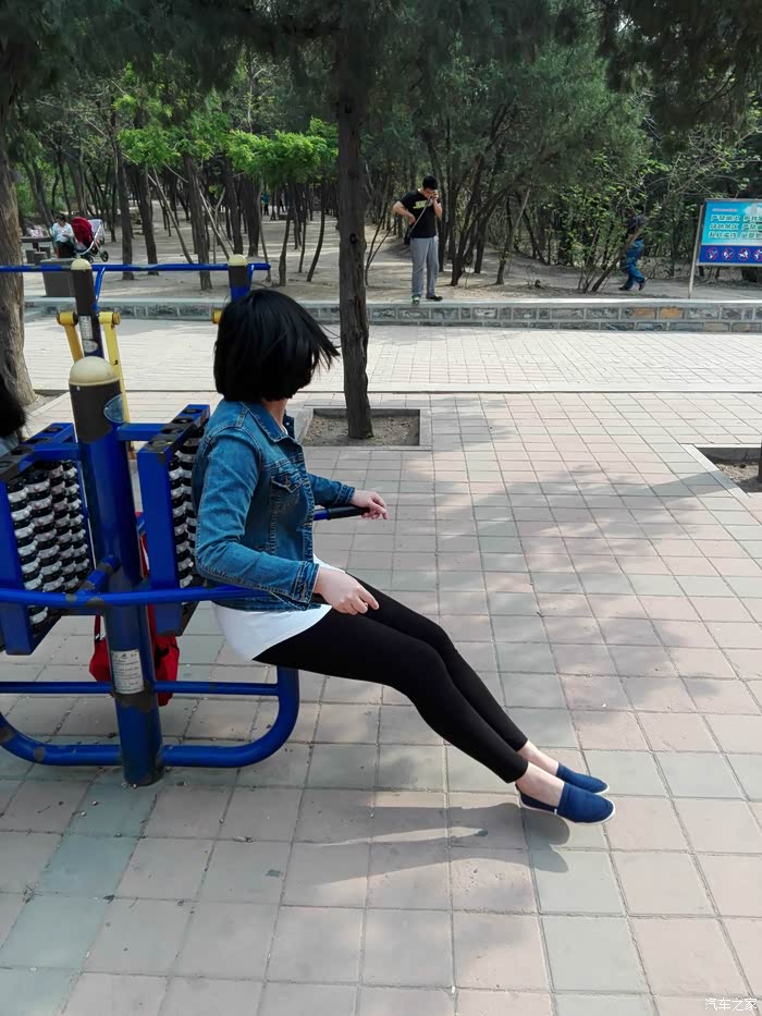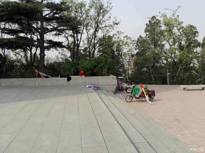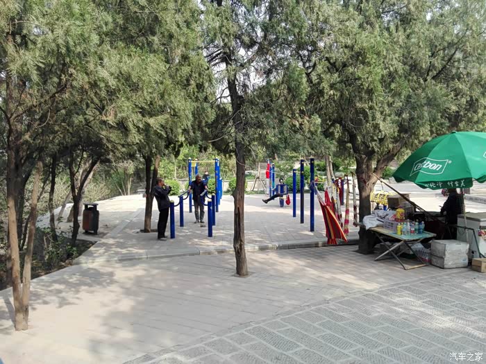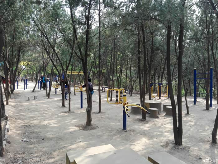 来到一块平缓的地势-三棵树广场,这里修建了大量的健身器材,是市民健身的好去处。