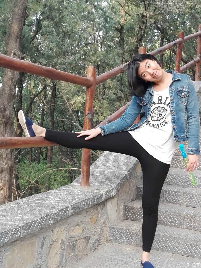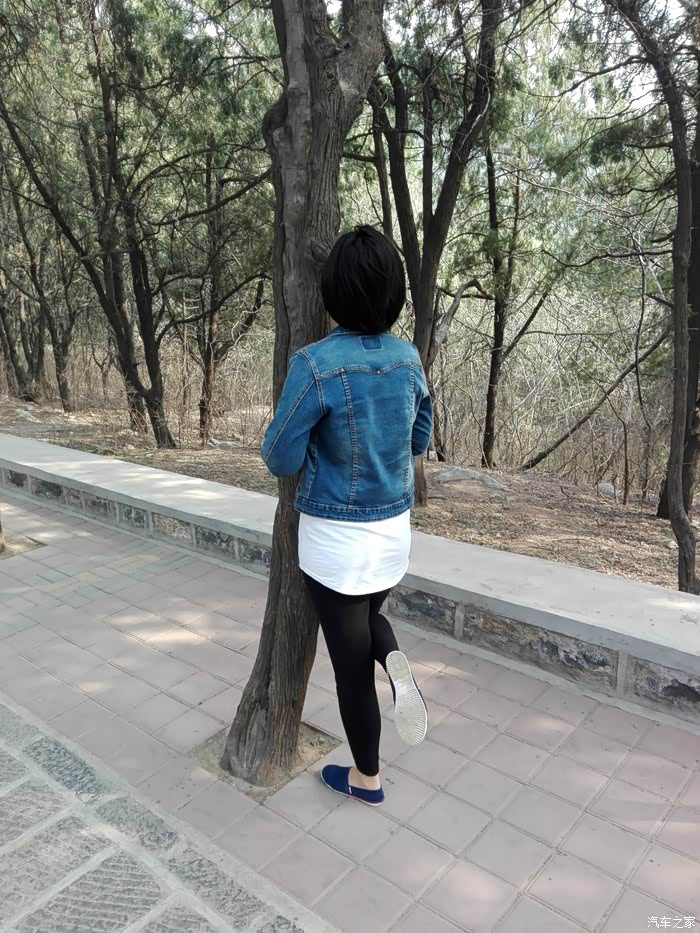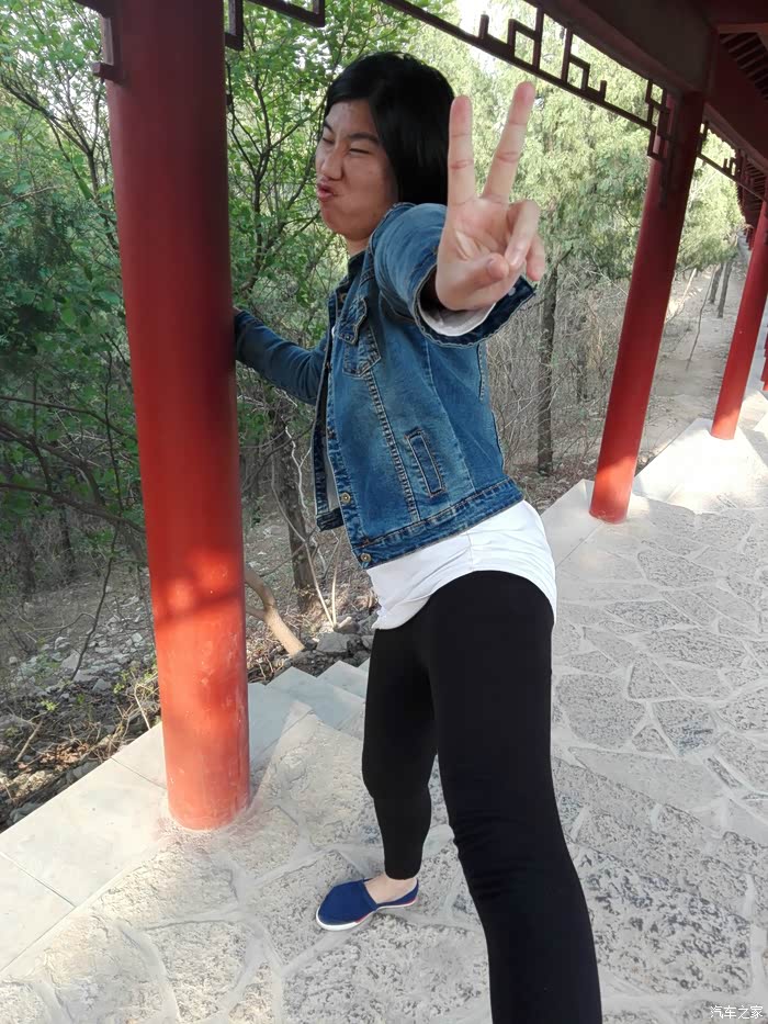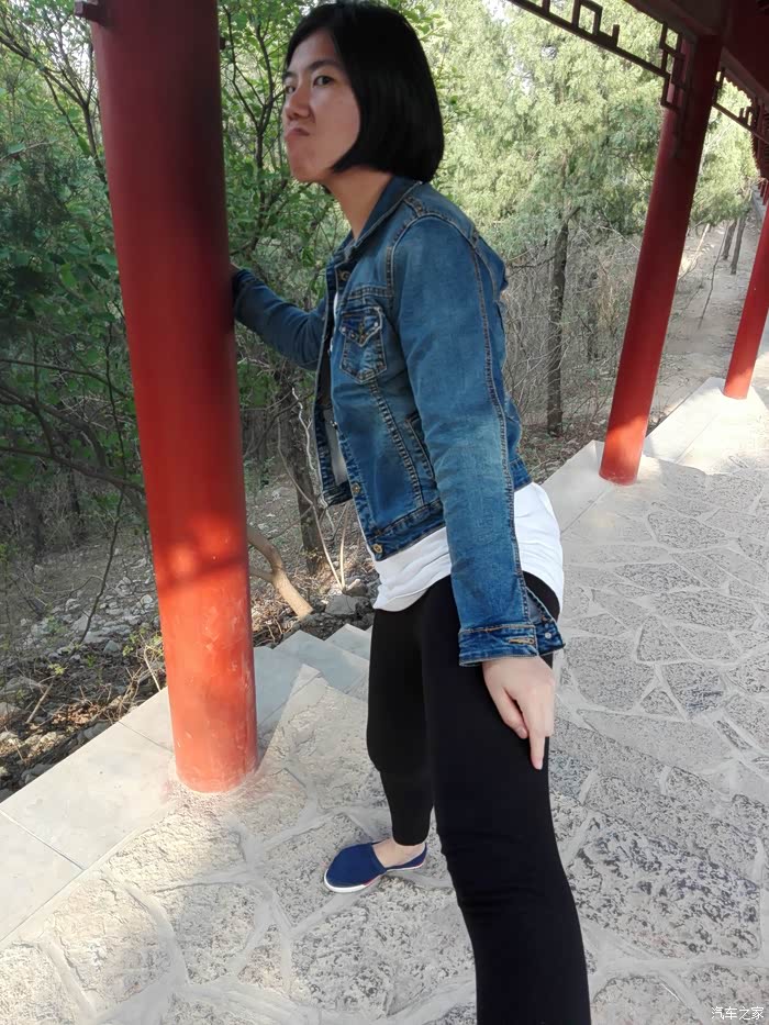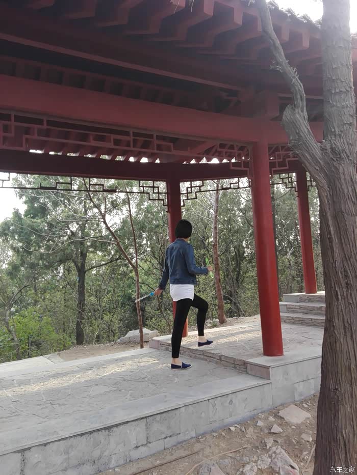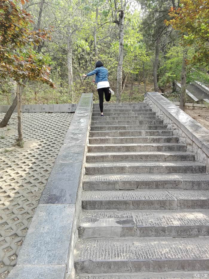 爬几步感觉热了,脱下外套来扎腰上。