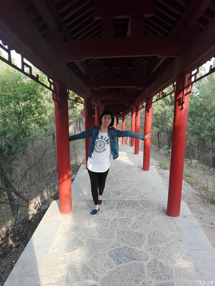虎妞的搞怪自拍,这边山势险峻,路边都修了栏杆锁链防止掉下山。
