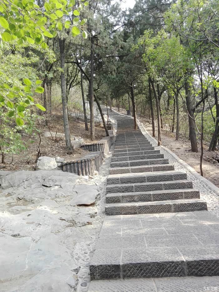两条登山路的交汇处,左边这条是西边广场上来的,右边这条是我们北边广场上来的,马上就到山顶了。