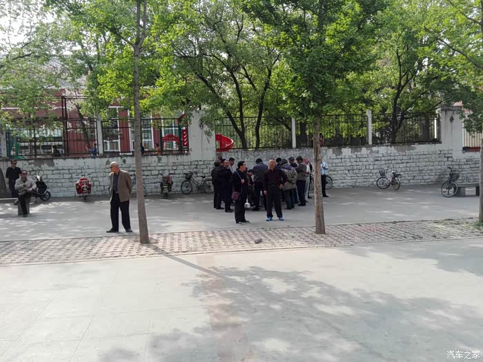 园区内一群打牌的大爷,今天不是周末,一路上老年人居多。