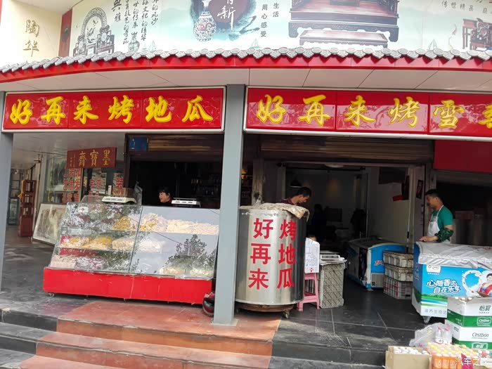 广场门口东侧的烤地瓜店,紧邻英雄山文化市场大门,很有名气,烤地瓜6元一斤,地瓜片干条都是13一斤。