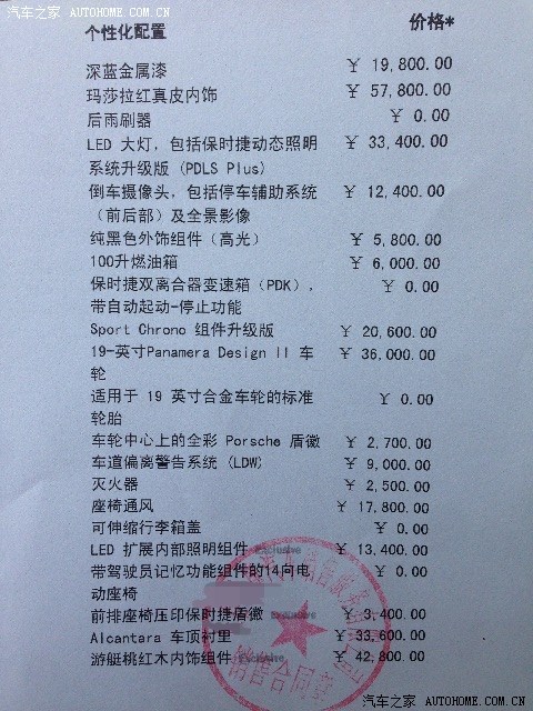 不多说了 由于保时捷中国系统选配还不是太完善现在只能简单选配 由于想早点拿车 也就忍痛割爱了。第一批车只能panamera2或panamera4还好发动机换了 隔音隔热玻璃选配不上 原本想选碳纤维内饰 可惜系统可以选择碳纤维内饰但系统不能选配碳纤维方向盘 所以没选!运动排气系统也没有可惜了 我在外国官网看 ps p4s pT 应该可以选 p p4都不可以选排气 我看外国官方网站可选配 在这里想告诉大家 如果不着急提车 等正式上市了在定比较好! 因为我在美国官网上看 选配多了好多东西 估计是中国还没正式上市所以系统不太完善 比如说全LED大灯 美国可以选黑色全LED 我们只能选择全LED大灯 还有彩色尾灯什么的 中国都没有 等等 所以不急的朋友可以等正式上市的在购买 !!!