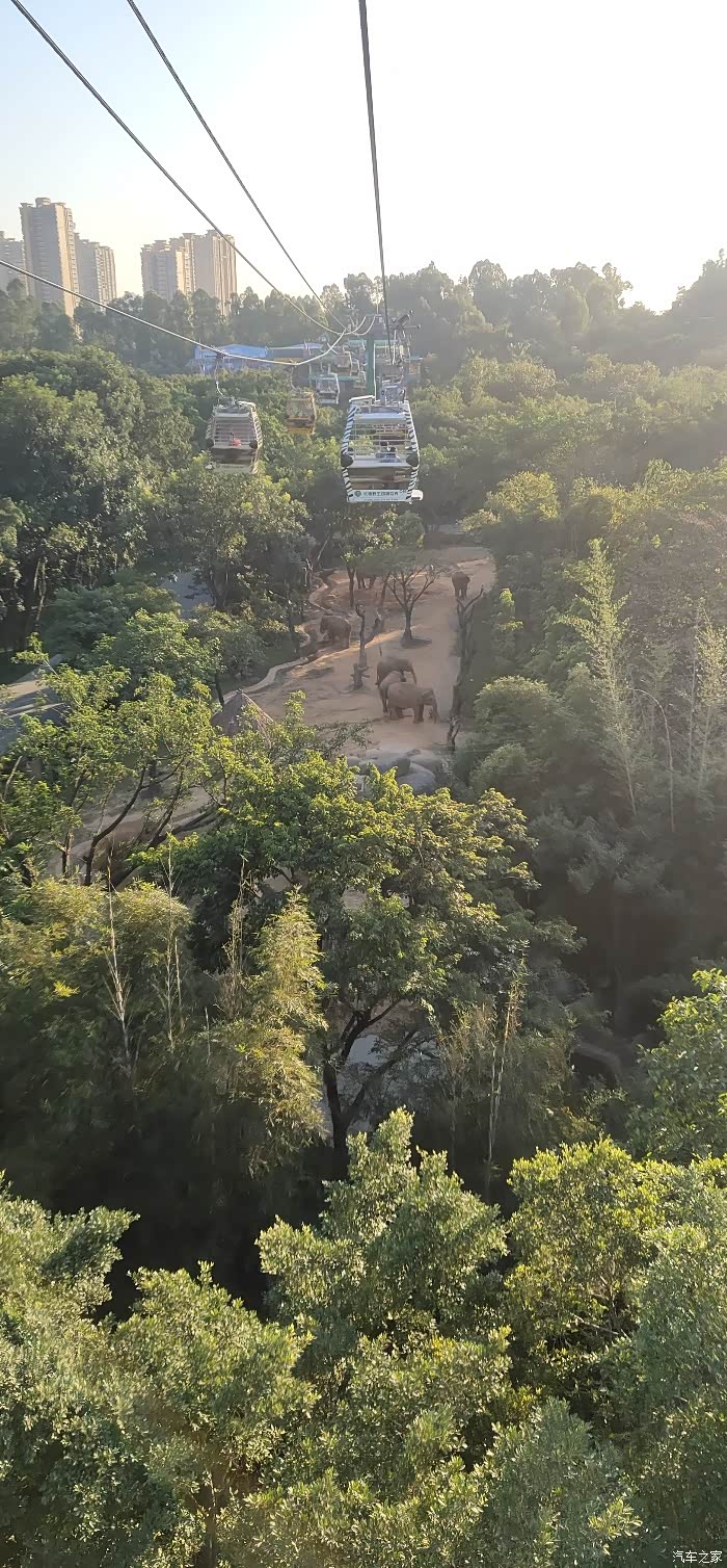 园区内的缆车和小火车都是免费的,小宝坐了两次空中缆车,从空中俯瞰,最赏心悦目的要属东非大草原了,可以看到成群的长颈鹿,斑马,角马,牛羚等,还可以看到大象等一些动物的生活区,十分有趣。
