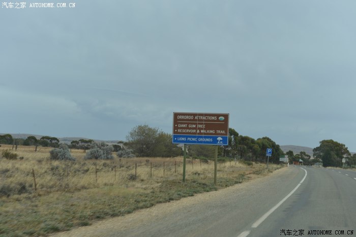 指路牌下面那个蓝色的信息牌,是休息站信息。大约每隔30或50公里都有一个无人执守的休息站,有路椅和停车位,偶尔有澳洲司机停在那里,咱们却更愿意在小镇歇歇脚。