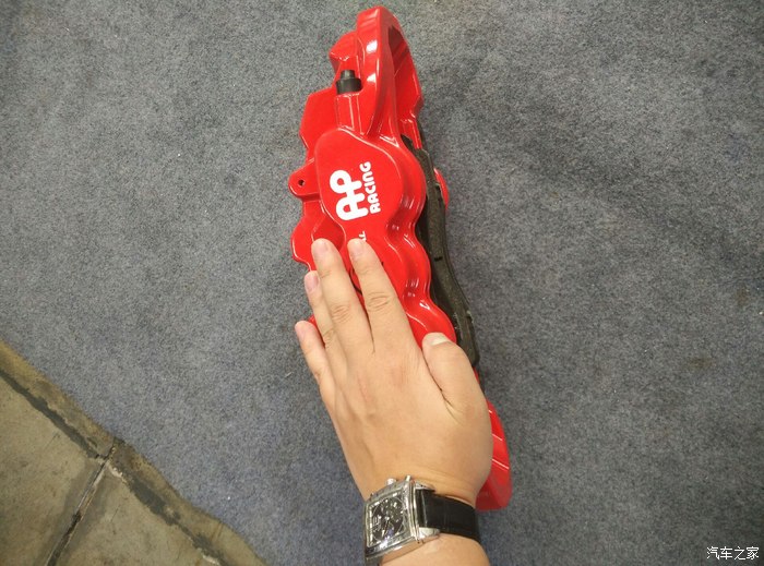 手不大不小,刹车卡钳大概两个手掌大小, 这张图很明显的可以看出,新款比老款大好多,视觉冲击感更强,当然一套合格的刹车,不光是好看,等下我会说试车感受,各位耐心看吧