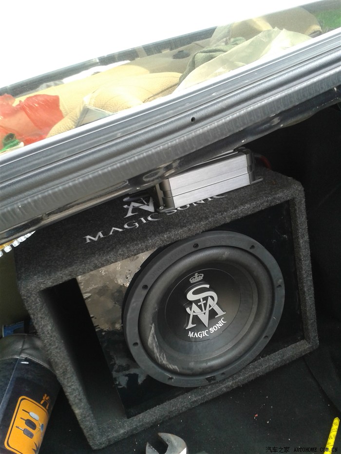 插播自己加装的10寸无源低音炮,附带上面单路大攻放。自己在网上查了一下,看英文,查不到品牌什么的信息,所以不算广告。如果版主不同意的话再删掉,没关系的。