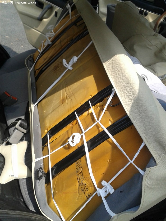 后座的靠背有四个卡子卡着,用力向上一抬就下来了。安装回去的时候,一定要在卡子上缠点布的电工胶带,要不让会有异响,很烦人的,特别是后座坐人过坑的时候。请自己DIY的注意了。。