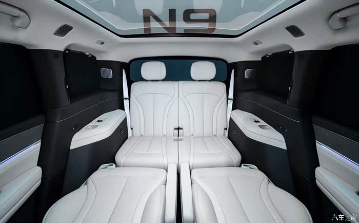 腾势N9:采用铂檀灰/云锦米双色内饰,配备17.3英寸吸顶屏、双50W无线充电、11L三开门冰箱,座椅支持通风/加热/按摩,三排可电动放平形成2.3米露营大床。