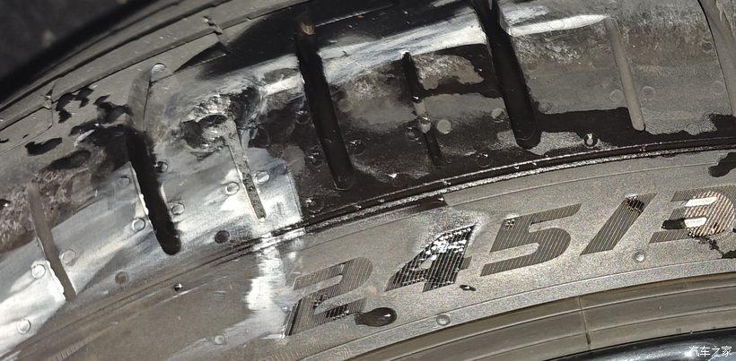 这是另外一个车友的米其林,胎壁干了一个大口子,也是可以修复的