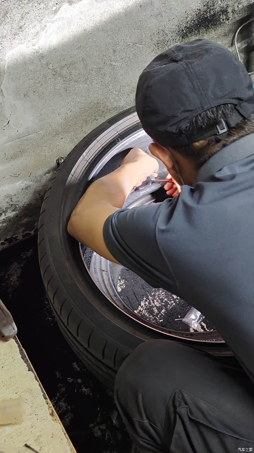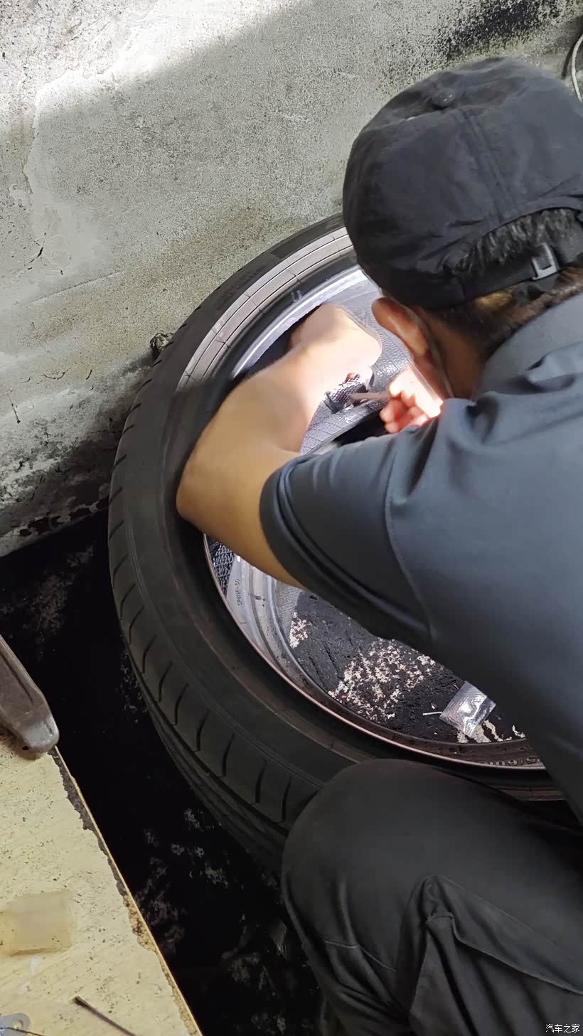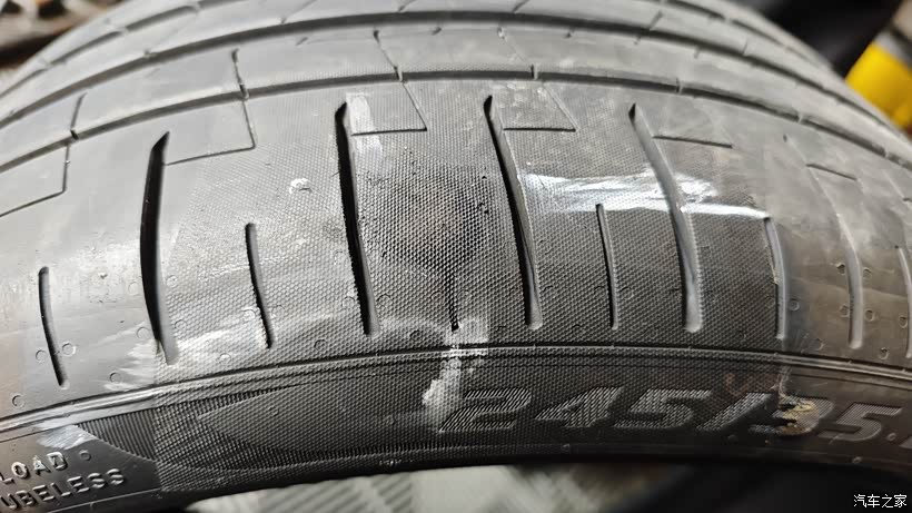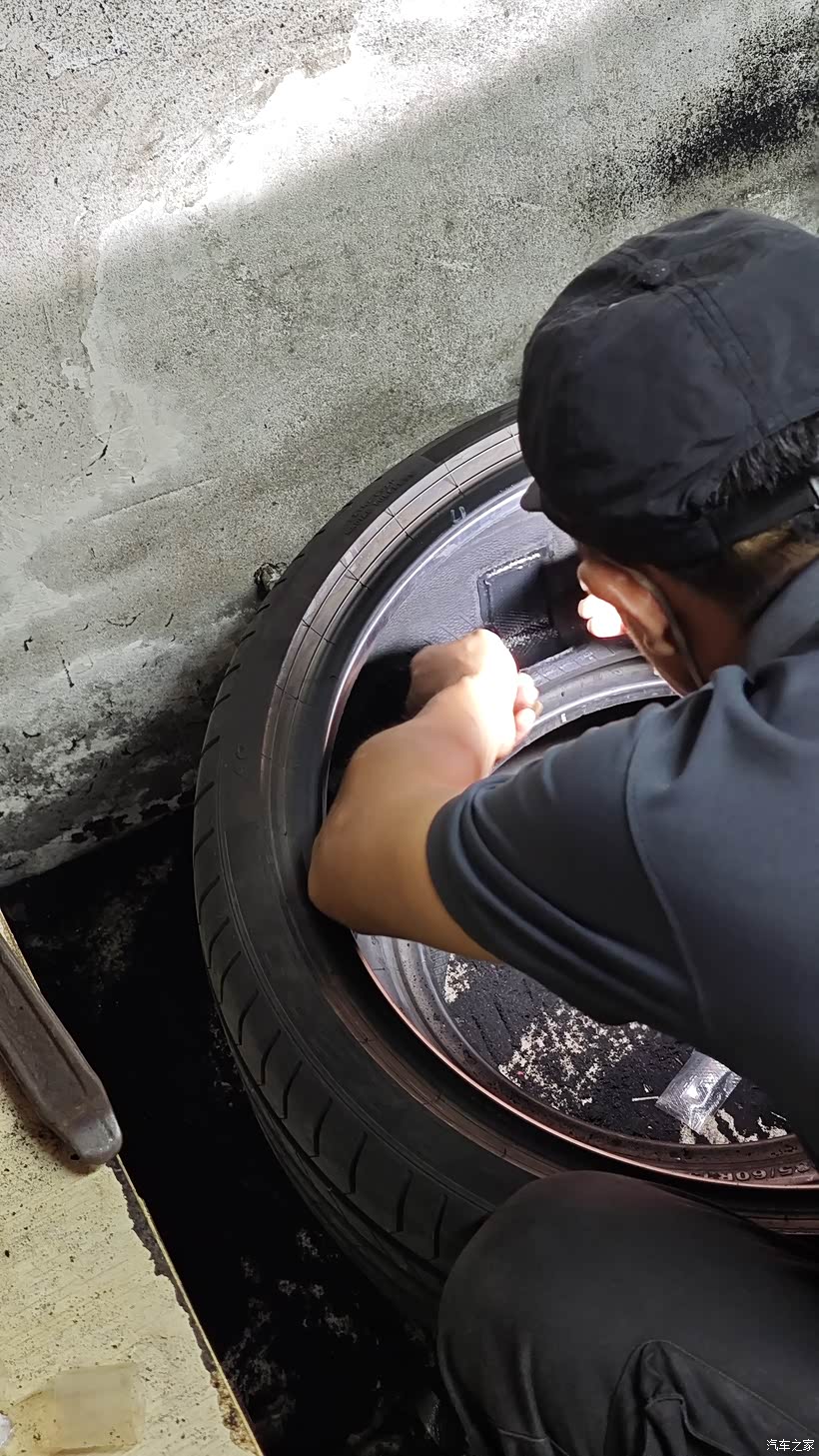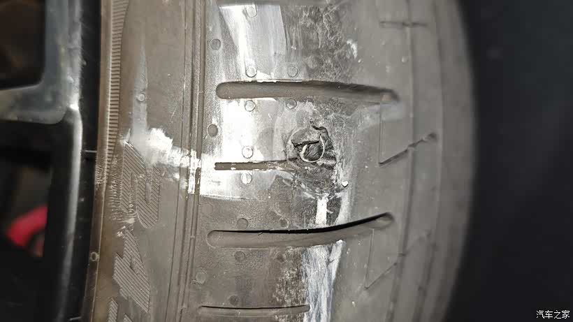 去了补胎店师傅说胎肩位置,贴片、蘑菇钉都不好补,建议我换新胎,我心里是知道的确实不好补,建议他先试着补下,补完果真还是漏气,钻尾丝还把胎面啃掉一块,留下一个窟窿,长期下去就是不漏气高速也是不安全。这条轮胎才跑了16000KM,原车是倍耐力PZ4,1500一个,扔了太可惜。
