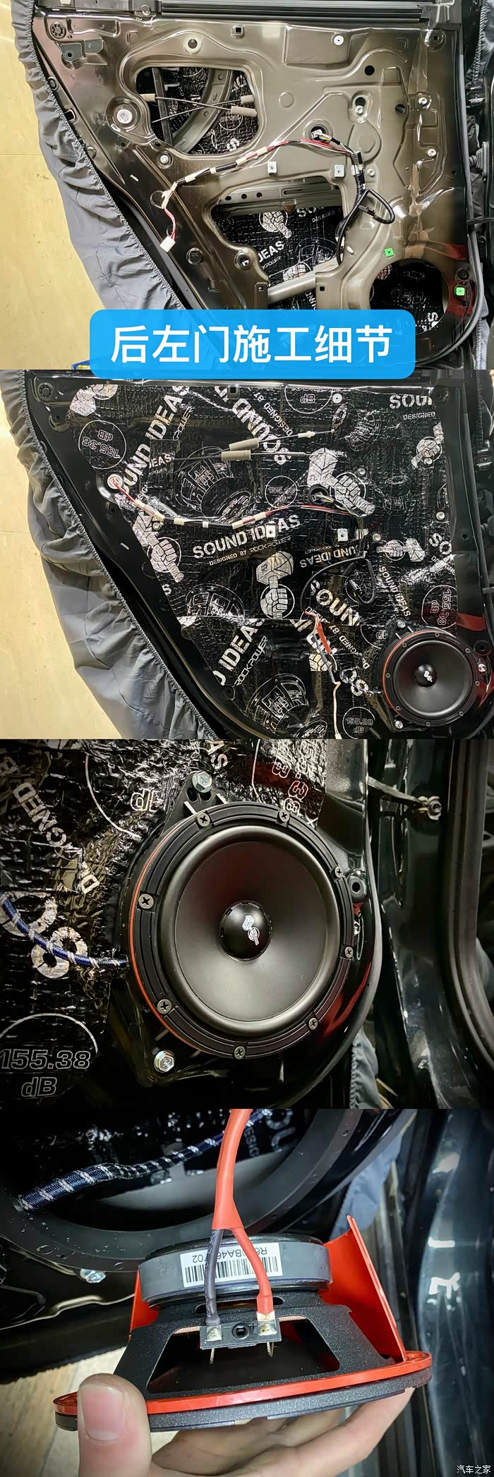 音响的开孔位置真是太重要了,不过个人不太喜欢开在车门深一点的位置,夏天光腿蹭上的时候会觉得有空气出来,比较痒,位置应该更浅一些