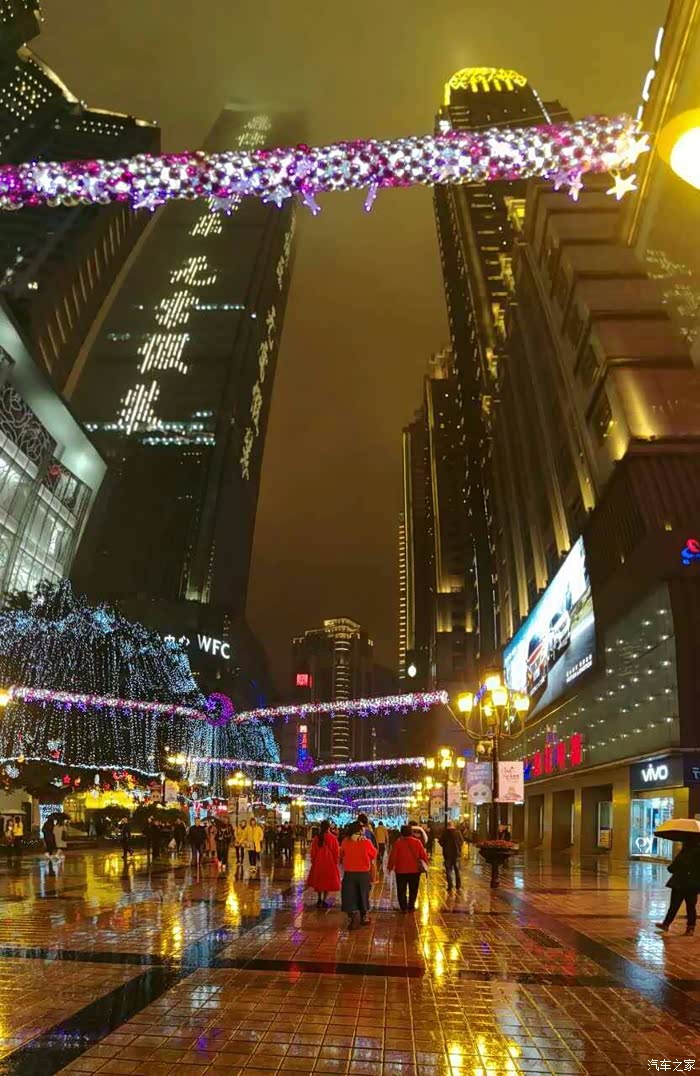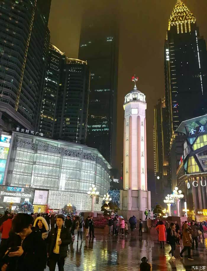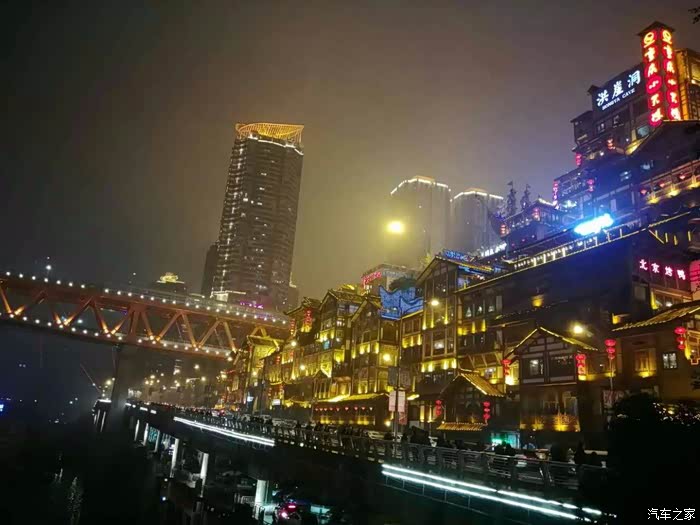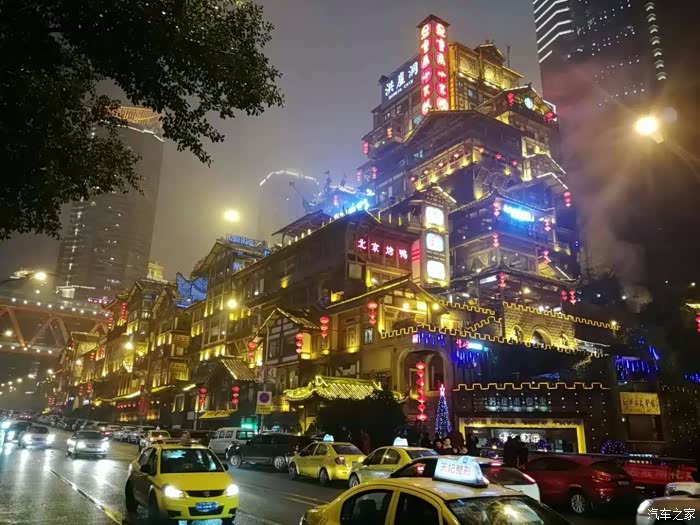 油菜花参观完毕,立即前往重庆,一路上大雾,能见度低,快到重庆,还开始下雨。重庆的夜景不错,住在解放碑附近。
