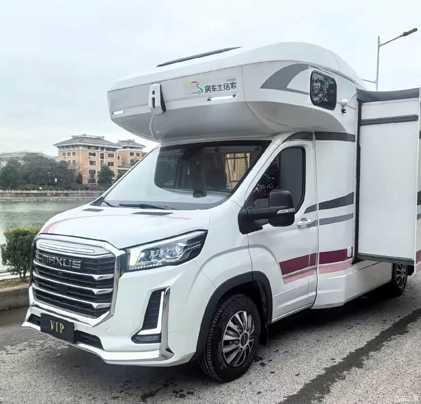 当时我为什么会选择买房车呢,也就是儿时的梦想,然后我选择了大通v100生活家,车长5996,宽2420,高3081,车顶600瓦的太阳能,外观配置就是这些,房车生活我非常喜欢,跟我老婆两个人都喜欢房车生活,一是有个移动的家,二是向往自由与远方,