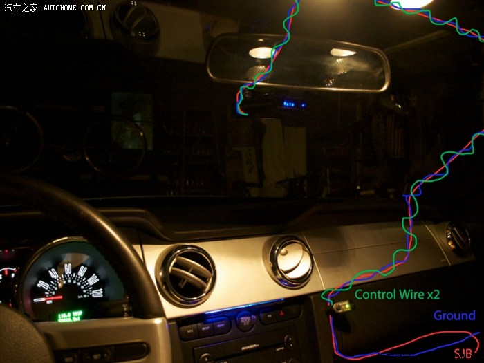 2015野马的电路设计,由于添加了自动变暗的后视镜,让我的电子狗变得有地方取电,而让我十分方便的安装。 12V正极开关为黄/黑线,12V负极为黑/蓝线。 想想当年自己做的氛围灯,和现在所有的东西,简直是天差地别,包括当年做的电子狗排线。