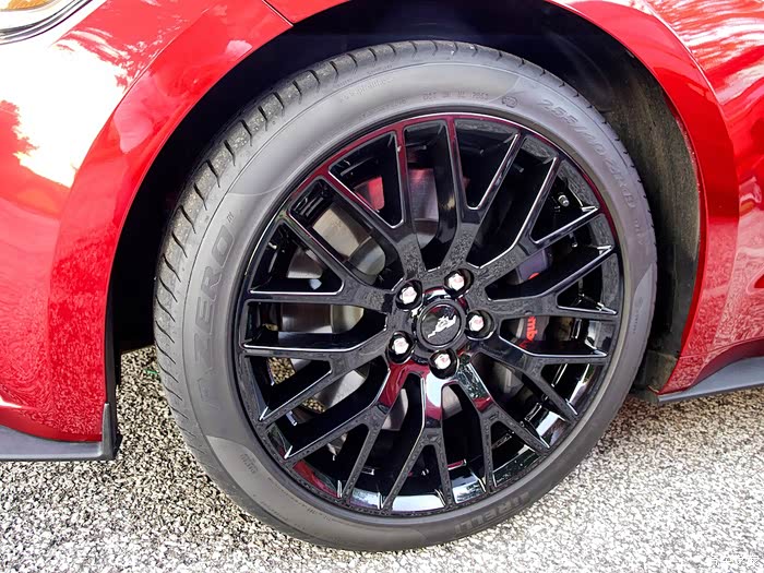 GT的性能包附带了19寸的黑煤球,升级前轮胎为255/40/19,并加大为6活塞卡钳(沿用了13-14的GT500卡钳)