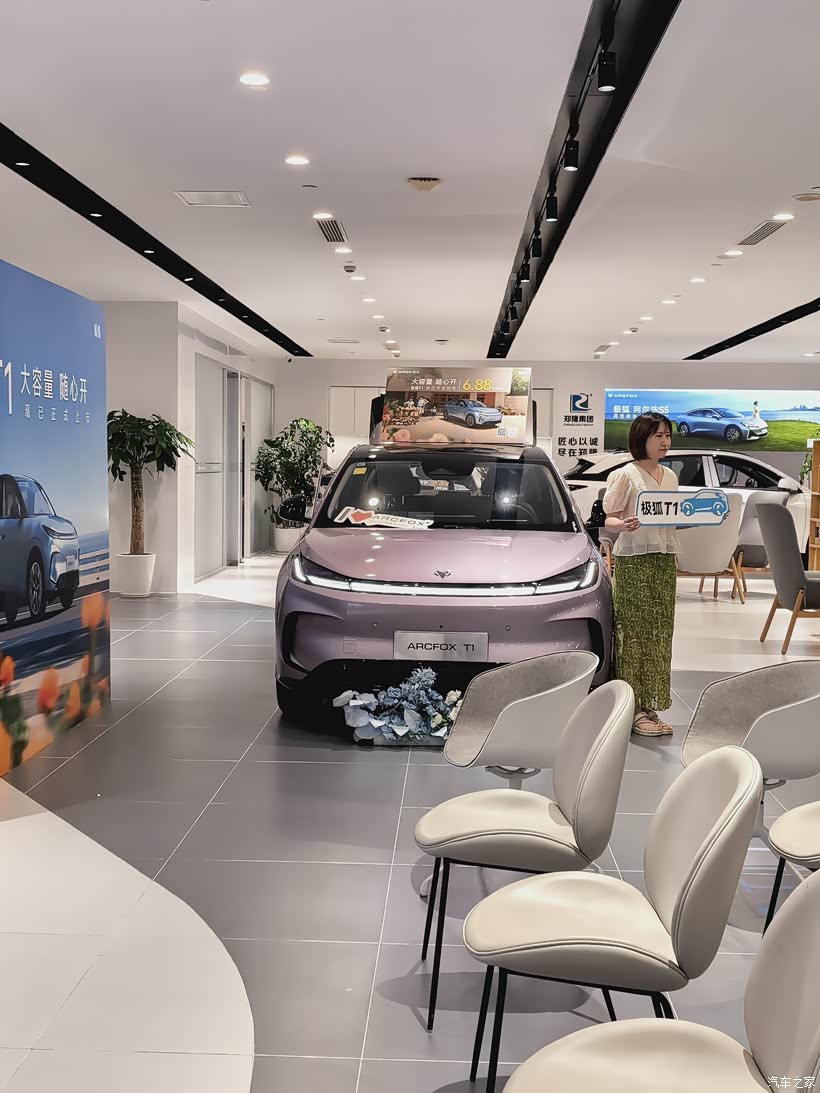 没想到极狐T1太火爆了,我们首批预售的车主大概等了有一个月时间才有紫色的MAX配置的车,因为上海的置换补贴政策突然调整后面要摇号,本来想要黑金内饰为了效率我们就提了一个云米内饰的现车。