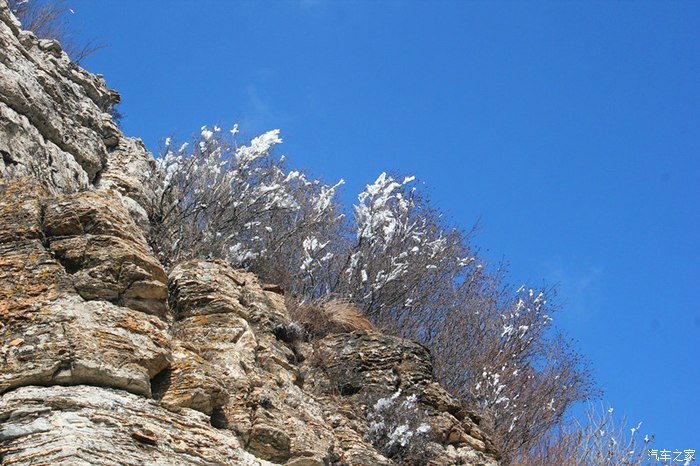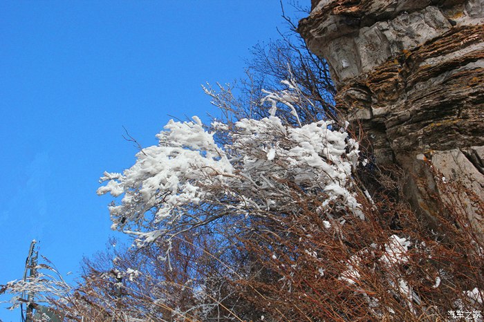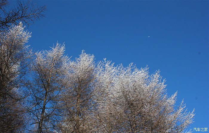 山上雪压树枝头,雾凇,像是披上一层薄薄的白纱,微笑看着人们来这里欣赏他们的美丽。