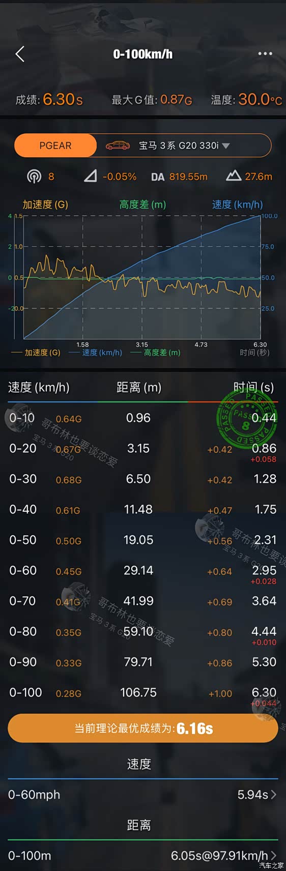 条件声明完了,让我们步入正题吧。因为换了头段,考虑到日常下市县没有98油可加,所以最开始我选择了CHN91二阶版本刷入,但是与其对比原厂状态,零百加速没有区别,甚至还慢了(均为中石化95油,Sport Plus S档半关防滑弹射控制模式2500转弹射起步)。下边是原厂车涯记录和CHN91加速比较(上图原厂,下图CHN91)。