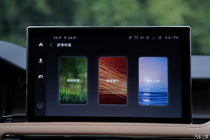 此次冒险家最吸引我们的就是这个舒享时氛功能,这个功能控制的是一套系统,协同了电子香氛、星光饰条、中控屏幕、音响等,为车主以及乘客营造一个具有氛围感的车内环境,不再是停留在概念上的仪式感,而是看得见、摸得着、闻得到。