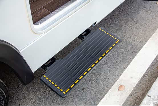 打开中门,踏步自动伸出,房车还是有点高,有这个电动踏步上车会轻松许多。但要小心腿被它撞到……