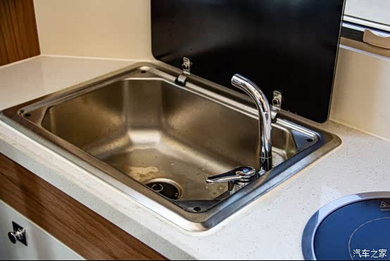 冷热水龙头和电磁炉,要用的话得打开总电源、逆变器、水泵和供热。我一开始以为水是电加热,后来才知道是驻车加热器用柴油烧热的。