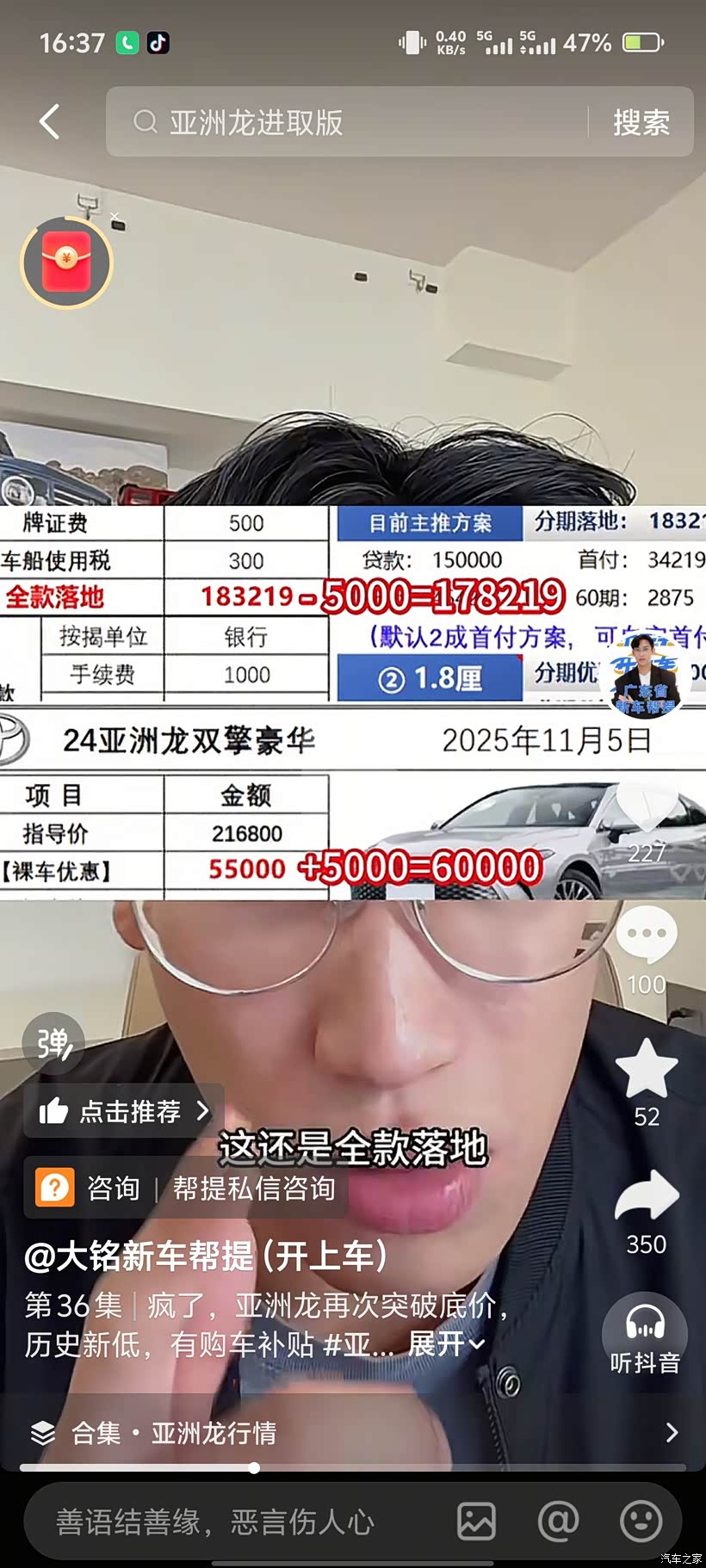 亚洲龙2.0l豪华全款17.82,这个有没有套路呀?有没有老哥了解过的?