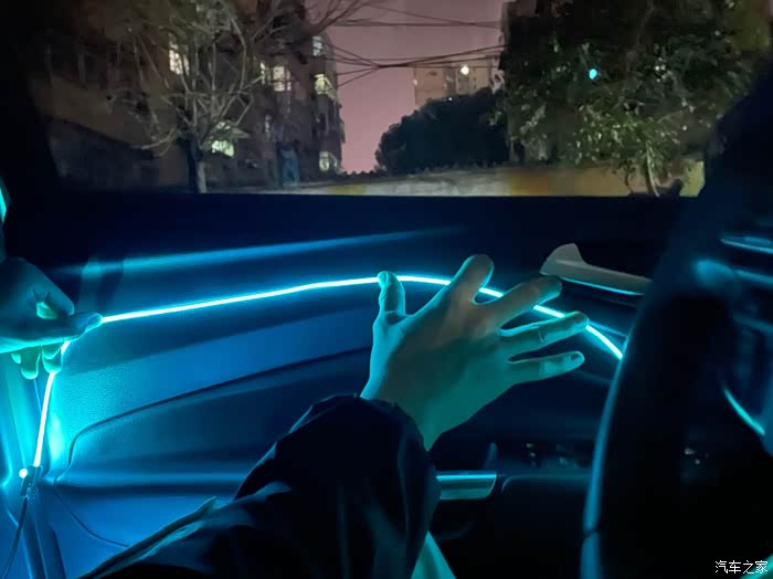 灯是64色手机软件蓝牙调色的,也可以自己设置模式让全车氛围灯根据音乐改变颜色
