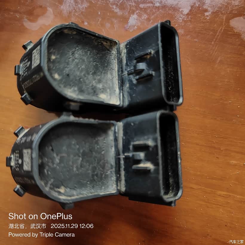 这就是我更换雷达模块的过程,就看各位敢不敢赌一把,先买一个弯脚的,这就是左右两侧的雷达模块,左右是不分的。中间是一个直脚的,坏的概率比较低。先换左后的,不行再看换下来的有没有开裂,试试把它再换到右后侧,当然也可能两侧的都坏了,那就再买一只,如果运气比较差那就可能是中间的坏了,要是运气再差三个都没坏,哎,那就当买个教训,再去检查线路吧!不过我希望大家都是一次搞定,顶多再买一个。
