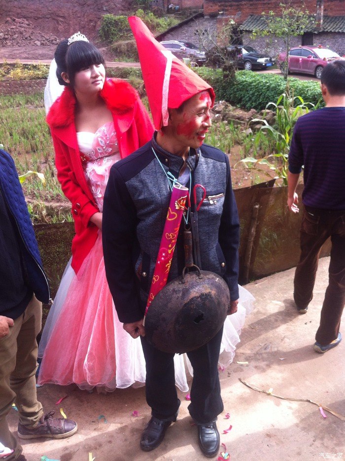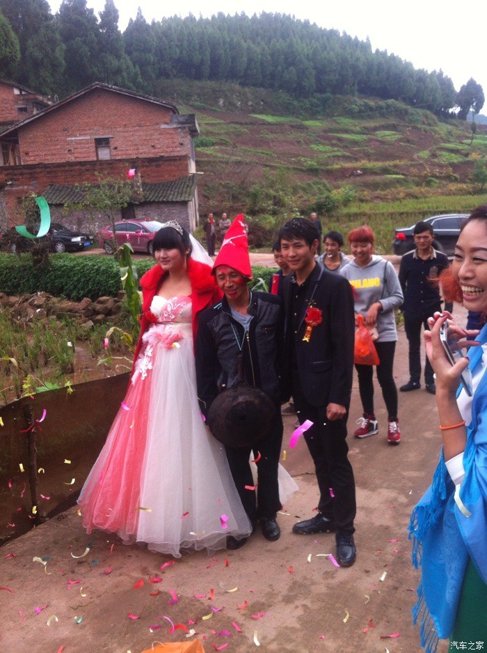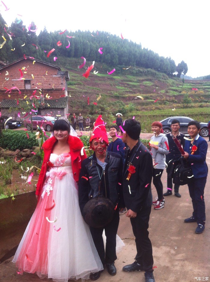 今天早上9点多从家里出发,一车4人,回老家参加一个亲戚的婚礼,农村婚宴,农村习俗,不过闹男方老爹的还是头一次见,听说别的地方有这样的习俗,废话不多说,上图见真相华丽丽的分割线------------------------------------------------------------------------------------------------------------------------这是从市区回老家抄近道的山路,从山脚爬到山顶,再从山顶滑到山脚,走国道,进5公里左右,山路不好走,图片看着很宽,其实只有双相单车道,会车很危险,贴着车身过,开习惯了就还好到达亲戚家,没停进去,给婚车留地方朋友们,雷地死安得姐特们,各位父老,各位乡亲,各位...