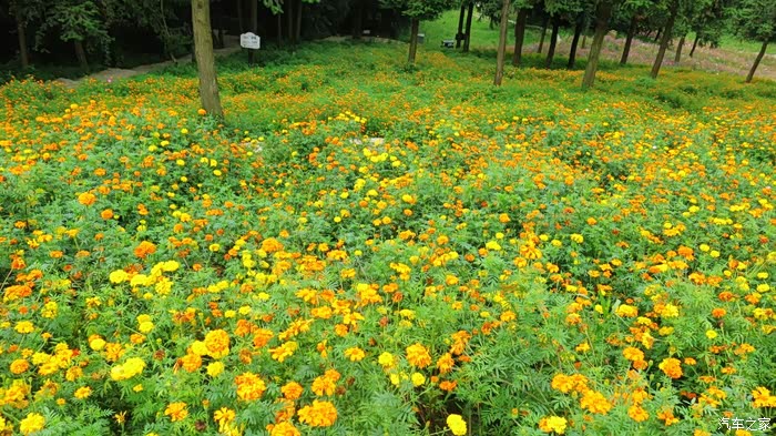 在这里层层花海波澜起伏,万寿菊、鸡冠花、孔雀草、醉蝶花、夏堇、鼠尾草等数十种鲜花呈阶梯式分布,背靠青山,奇石、木屋点缀其间,清新质朴的大自然,令人陶醉。