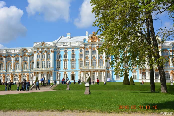 叶卡捷琳娜宫殿及公园 又称皇村—由古老的花园,英式风景花园,许多被分开的池塘及叶卡捷琳娜宫 等组成。是为了纪念叶卡捷琳娜一世而建造的。在叶卡捷琳娜宫殿里可以看到让人震惊的琥珀宫,音乐厅等等许多美丽的展厅。宫殿的格局则是建筑精巧淫靡,色彩清新柔和,弥漫着女性的柔美、娇媚的风韵。可以说园中到处是诗,到处是画,无处不飘动着令人心醉的旋律。它于1990年被列入联合国世界遗产名录。