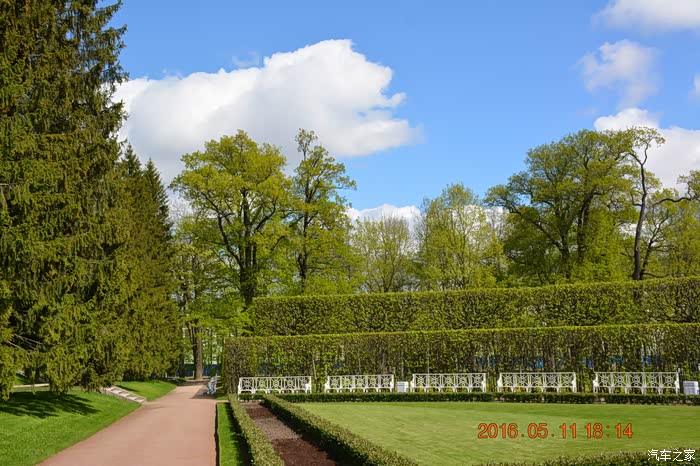 察里津诺庄园大气幽雅,被郁郁葱葱的森林包围,森林中的树木高大挺拔,有些树估计是当年皇宫留下来的,已有几百年的树龄了。