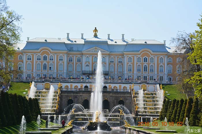 圣彼得堡夏宫是彼得大帝及其后数代沙皇的避暑行宫,其中建筑豪华壮丽,喷泉多姿多彩,森林幽静葱郁,有“俄罗斯的凡尔赛”之美誉。夏宫位于圣彼得堡郊区毗邻芬兰湾的大森林中,宫院背倚丘陵,面对芬兰湾,总占地800公顷,由大宫殿、上下花园、玛尔丽宫、奇珍阁、亚历山大花园及茅舍组成,花园宽阔的草坪上分布了众多的喷泉与镀金雕像,每至盛夏,全园近200个喷泉、2000多个喷柱,不停地向蓝天喷放出水柱,形成瀑布和千姿百态的造型,有着“喷泉之都”、“喷泉王国”、“露天博物馆”之美誉。