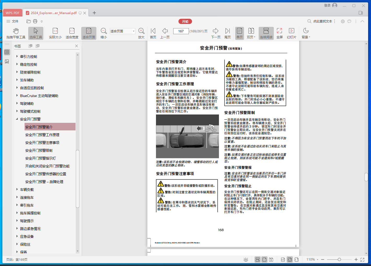 注意:不得因为有安全开门预警而在下车时不加以留意。