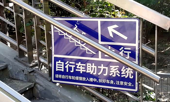 这个设施很方便自行车上下过街天桥