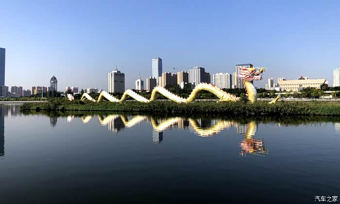 游船码头的龙灯。停车场旁就是汾河东岸