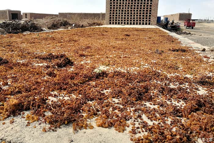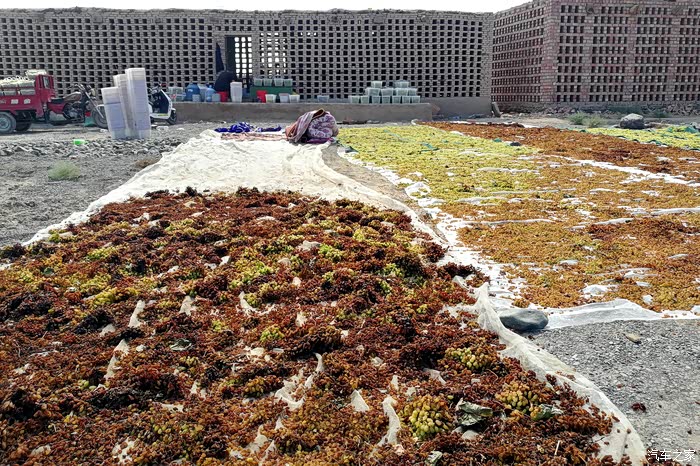 约12:40翻过天山山脉后G312沿途七克台村路边看看怎样晒葡萄