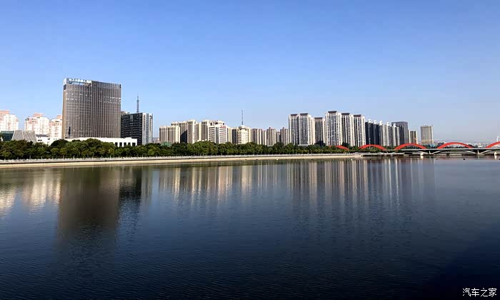 清晨停车场旁的汾河