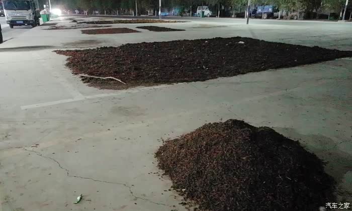 驻车夜市附近的一个绿地公园停车场,卫生间有但是锁着门,停车场上晒满了葡萄干
