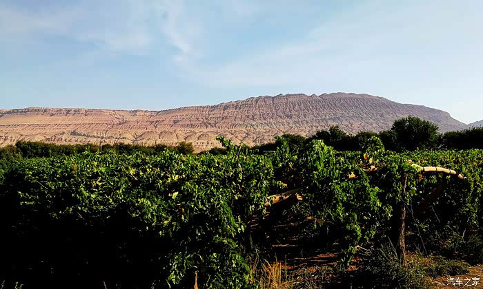 火焰山和葡萄架。吐峪沟乡去往火焰山镇的路上。