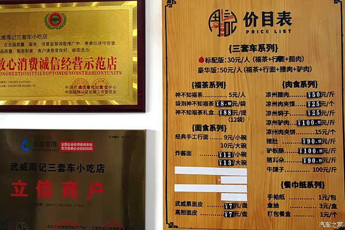 古城内每家店都会有菜品的量化公示